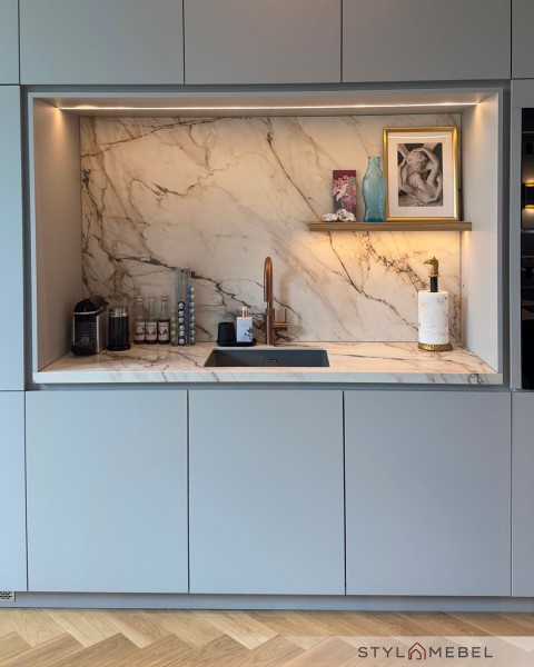 - Blat Neolith Calacatta Lux Ultra Soft - wygląda jak marmur z Vogue, ale nie boi się codziennego użytkowania