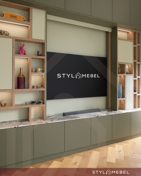 Zabudowa meblowa do salonu, która łączy: