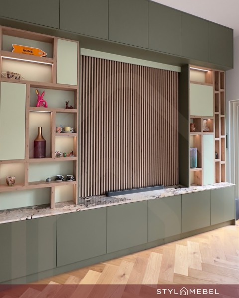 Matowe zielone zabudowanie w salonie