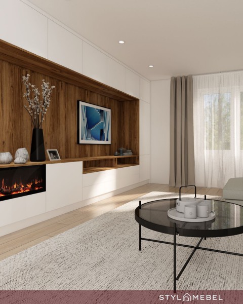 To nie tylko mebel, ale przemyślana aranżacja całej ściany – z miejscem na telewizor, przechowywanie, dekoracje i atmosferę.