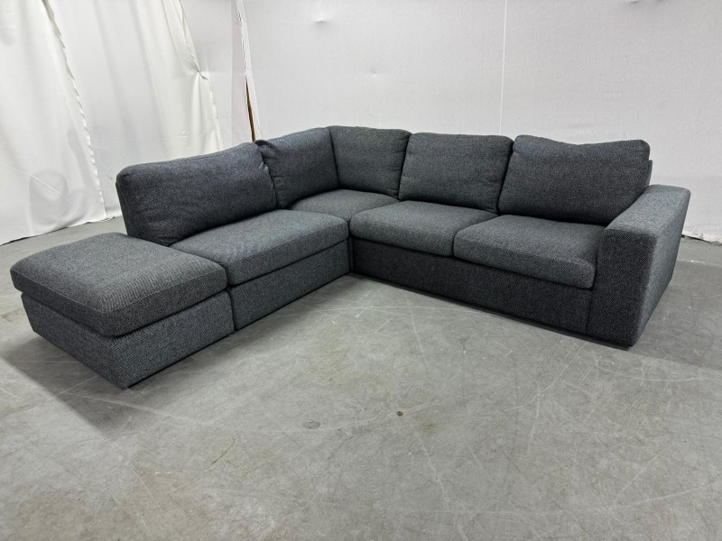 Narożnik jest używany, ale w bardzo dobrym stanie i został profesjonalnie wyprany przy użyciu maszyny do czyszczenia tapicerki, dzięki czemu wygląda jak nowy.