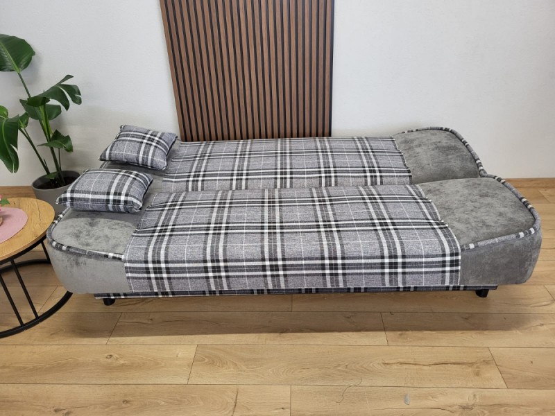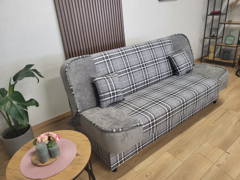 Wersalka rozkładana FILIP została wykończona miękką tkaniną w kratę.