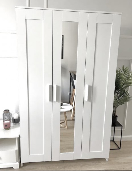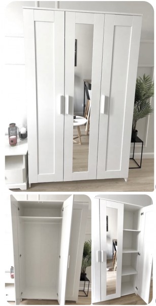 Sprzedam 3-drzwiową biała szafę z lustrem.