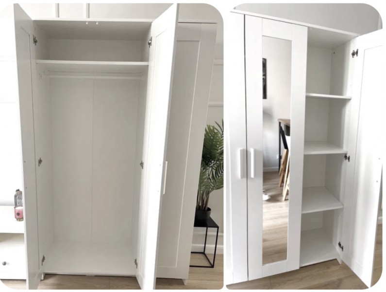 BIAŁE MEBLE - Komoda + Garderoba z lustrami