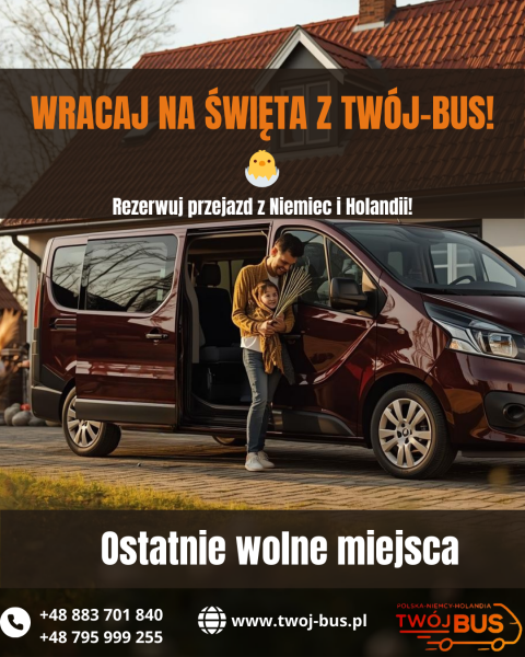 DUŻE KOMFORTOWE BUSY VIP CODZIENNIE Z ADRESU NA ADRES WOLNE MIEJSCA