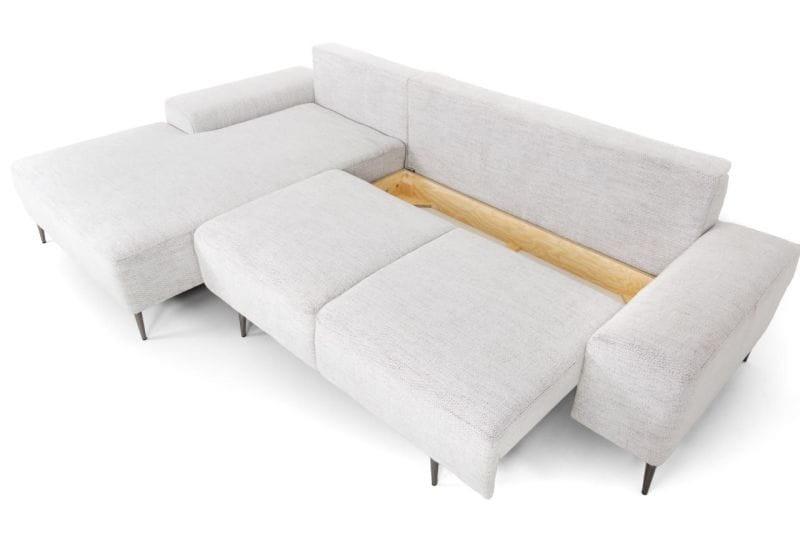 Narożnik PULIA to elegancki narożnik do salonu, który wyróżnia się proporcjami, oraz harmonijnymi kształtami. PULIA jest nie tylko wygodny, ale też wprowadzi do wnętrza odrobinę paryskiego szyku i elegancji. Subtelna forma, oraz miękkie siedzisko zapewnią niezwykły komfort użytkowania, a metalowe nóżki delikatnie unoszą korpus nadając całości lekkiego charakteru. Tkanina, która obity został narożnik jest niezwykle delikatna w dotyku ale też wytrzymała na ścieranie. W siedzisku zastosowano wysokiej jakości pianke HR, oraz sprężyny faliste, które gwarantują solidność. Aby w pełni wykorzystać przestrzeń w której usytuowany jest narożnik, dołożyliśmy funkcję spania, oraz pojemnik na pościel. Jest to idealne rozwiązanie w przypadku niezapowiedzianych gości lub wielofunkcyjnych pomieszczeń.