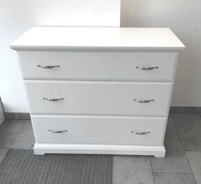 Sprzedam białą bardzo masywną komode. Komoda posiada 3- szuflady, jest pojemna.