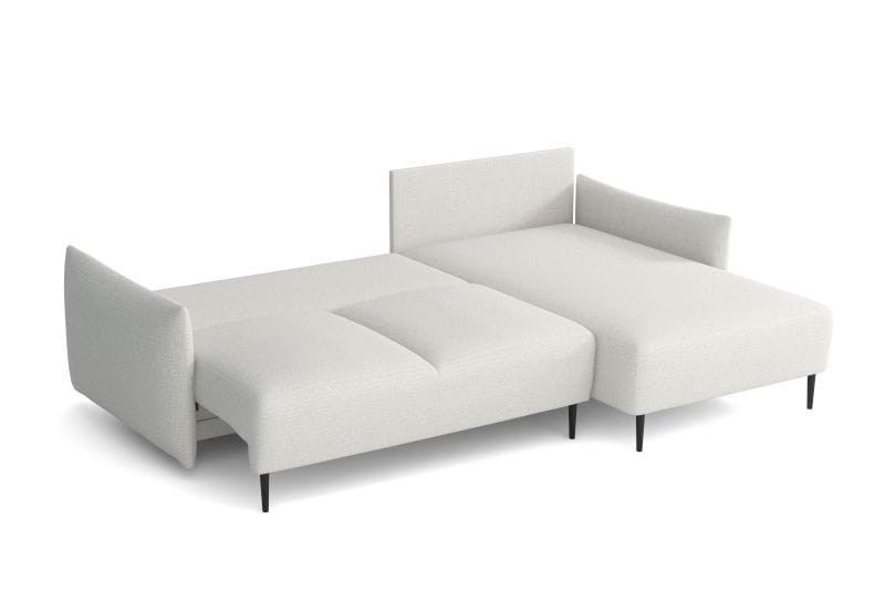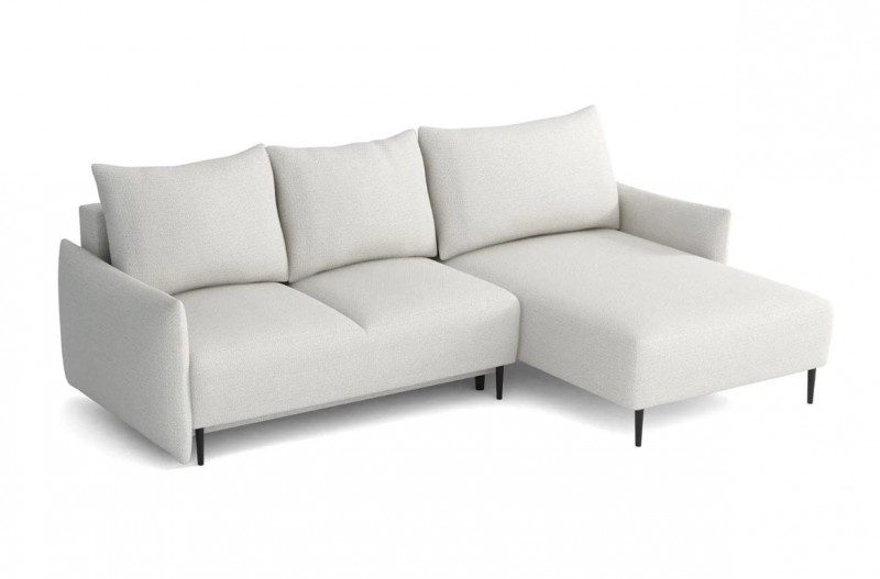 Czym byłby salon bez wygodnej kanapy? Z pewnością taki salon nie mógłby być strefą komfortu i wypoczynku. Narożnik SONRE, jest komfortową kanapą z designerskim wyglądem. Wyróżnia go klasyczny i ponadczasowy design dzięki czemu idealnie wkomponuje się w nowoczesne wystroje wnętrz. Posiada funkcję spania, oraz pojemnik na pościel co daje oazę wytchnienia po ciężkim dniu pracy. Bez problemu zastąpi łóżko sypialniane przed telewizorem, oraz będzie meblem sypialnianym dla gości. Pod korpusem w pojemniku zmieścimy całą pościel na zmianę. W siedzisku zastosowana została wysokiej jakości pianka elastyczna, oraz sprężyna falista, która zapobiega odkształceniom i wysiedzeniu narożnika. Wyjątkowy kształt, miły w dotyku materiał, a także bogata kolorystyka daje poczucie, że zakup kanapy SONRE to strzał w dziesiątkę.