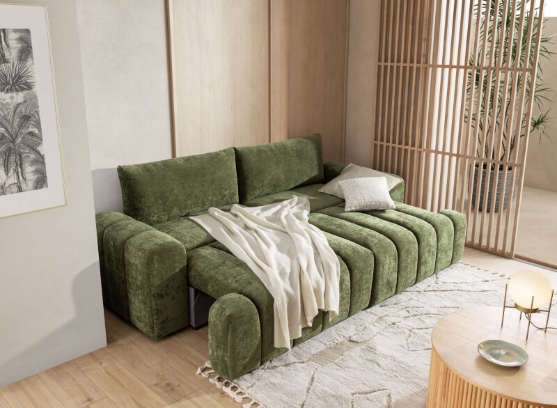 Największą zaletą modelu jest funkcja transformacji – w prosty i szybki sposób możesz zmienić klasyczną sofę w wygodny narożnik. To idealne rozwiązanie do nowoczesnych mieszkań, w których liczy się elastyczność aranżacji i maksymalne wykorzystanie przestrzeni.