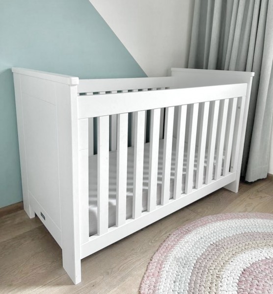 Witam sprzedam - Solidne - Białe łóżeczko z materacem. Regulowane poziomy wysokości.