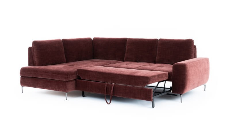 Narożnik z funkcją spania GINOSSA zamieni salon w wygodną sypialnię dla domowników lub gości. W pojemniku na pościel zmieszczą się dodatkowe koce i poduszki.