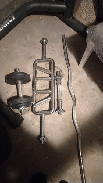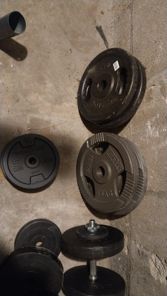 Witam,mam do zaoferowania ławkę skośną oraz dwa gryfy plus obciążenie 4x15 kilo metal 4x5 kilo metal oraz 40 kilo tworzywo sztuczne łącznie 120 kilo plus dwa hantle oraz pas
