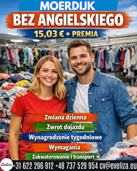 Miejsce pracy Moerdijk 15,03 € + premia BEZ ANGIELSKIEGO