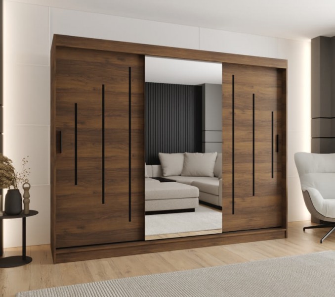 Szafa przesuwna 250 z lustrem ROBIN orzech warmia