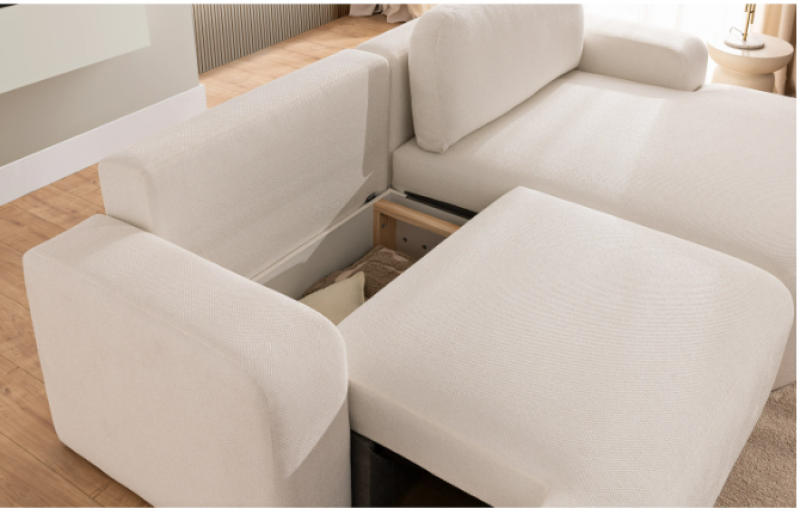 Mały narożnik rozkładany ATON w stylu chmurki. Wyposażony w funkcję spania i pojemnik na pościel, które zamienią salon w wygodną sypialnie. Niezwykle wygodny i przytulny narożnik do małego salonu.