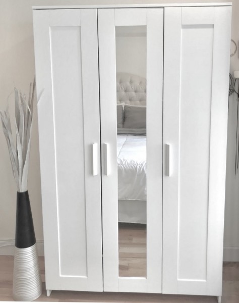 Sprzedam 3-drzwiową biała szafę z lustrem.