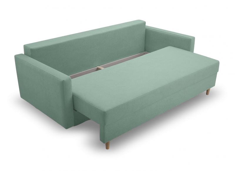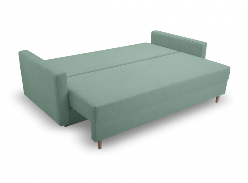 Kanapa dostępna jest w tkaninie quelle, w odcieniu miętowym