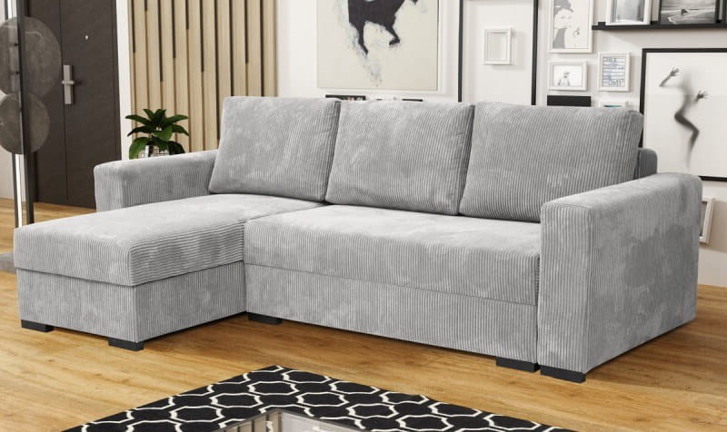 Narożnik LORENT z funkcją spania jest sofą uniwersalną. W każdej chwili możesz zmienić stronę mebla zmieniając wystrój pomieszczenia. Duże poduchy wygodne dopełnią komfortu podczas oglądania telewizji. Został wykończony najmodniejszą tkaniną tego sezonu - tkaniną prążkowaną poso.