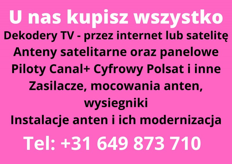 Oferujemy: sprzedaz instalacje Polskiej TV w Holandii