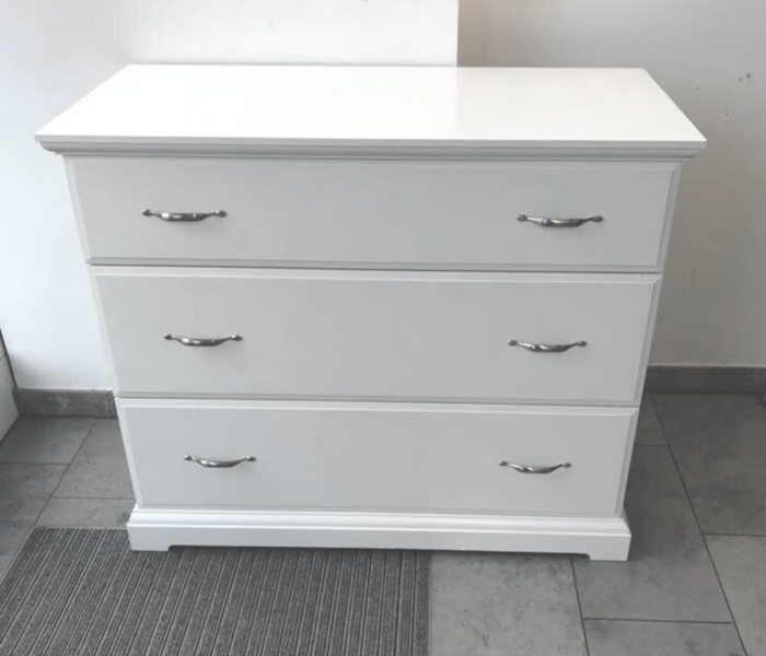 Sprzedam białą bardzo masywną komode. Komoda posiada 3- szuflady, jest pojemna.
