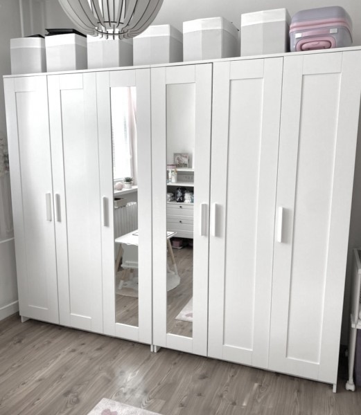 Białe 2 identyczne szafy 3-drzwiowe z lustrem.