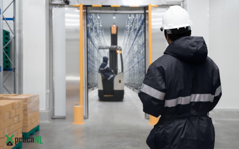 Pracujesz na reachtruckach BT/Toyota – zamknięte kabiny, ogrzewanie i radio. Sporadycznie trzeba wyjść z wózka, by przełożyć karton lub oznaczyć paletę. Środowisko chłodnicze (część hal do -20°C).