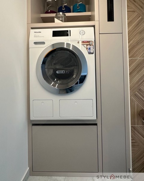 Dyskretna strefa gospodarcza: Pralka i detergenty zniknęły za estetyczną zabudową – porządek robi się sam!