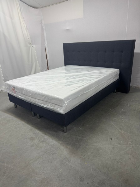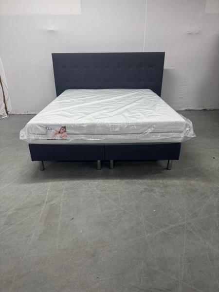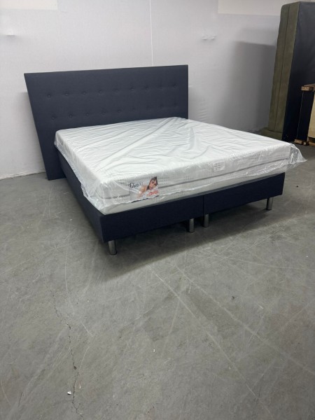 Boxspring z nowym materacem, jest używany, ale w bardzo dobrym stanie i został profesjonalnie wyprany przy użyciu maszyny do czyszczenia tapicerki, dzięki czemu wygląda jak nowy.