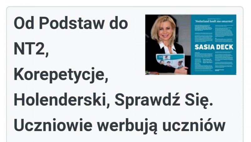 Sasia biegle mówi po niderlandzku i poprowadzi zajęcia w Barendrecht Face to Face, albo w twojej firmie.
