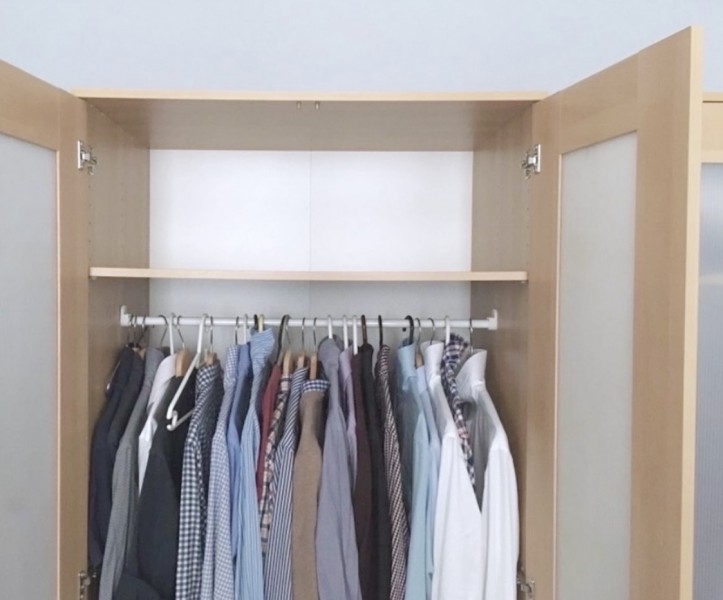 (szafy można rozdzielić i postawić osobno) W każdej szafie jest półka i drążek na wieszaki)