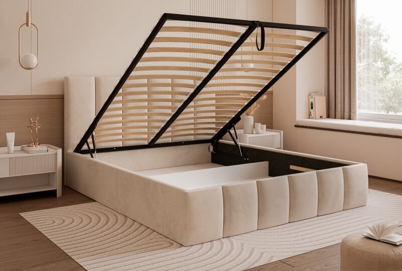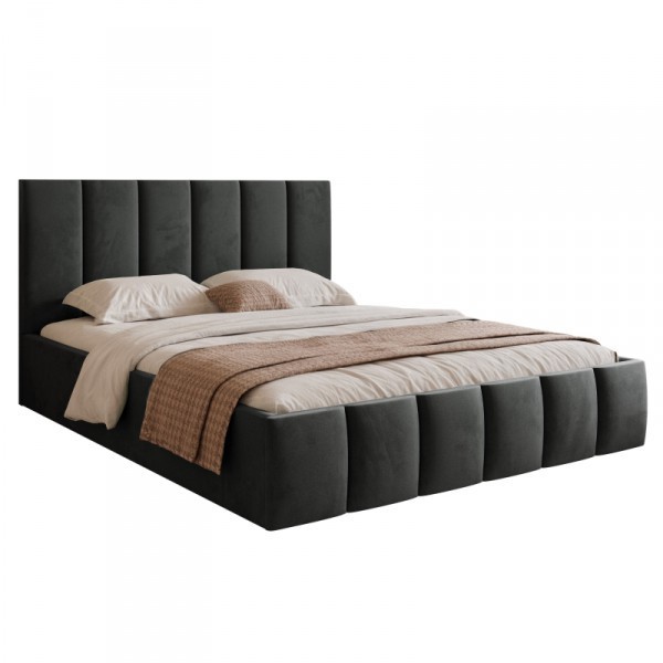To piękne i nowoczesne łóżko sypialniane z pojemnikiem. Będzie zarówno wygodnym miejscem do spania, jak i ozdobą sypialni. Masywny i solidnie wykonany korpus zapewni stabilność. Duże i ciekawe wezgłowie dopełnia całości i przyciąga uwagę - dostępne w dwóch rozmiarach wysokość 90cm i 110cm.