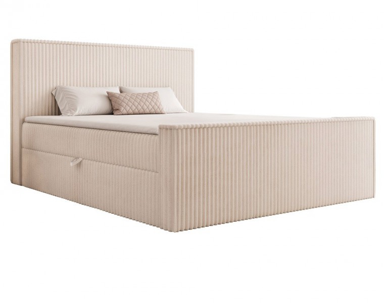 Wyjątkowe podwójne łóżko sypialniane z 2 pojemnikami na pościel. Zamieni sypialnię w wyjątkowy i modny apartament. Wysokie tapicerowane głądkie wezgłowie oraz wysoki przednóżek dodają całości wyjątkowego charakteru. Dostępne w 5 rozmiarach zarówno do małej, jak i dużej sypialni.
