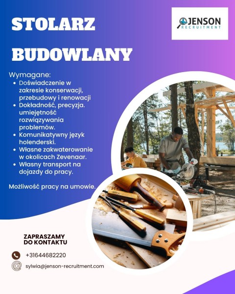Dla jednego z Naszych klientów Jenson -Recruitment poszukuje doświadczonego stolarza.