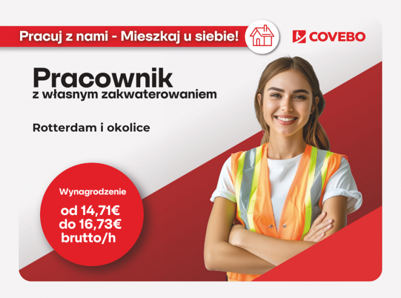 Więcej ofert z różnych regionów, znajdziesz na stronie internetowej (skopiuj link i wklej do przeglądarki) www.covebo.pl/praca-w-holandii-z-wlasnym-zakwaterowaniem