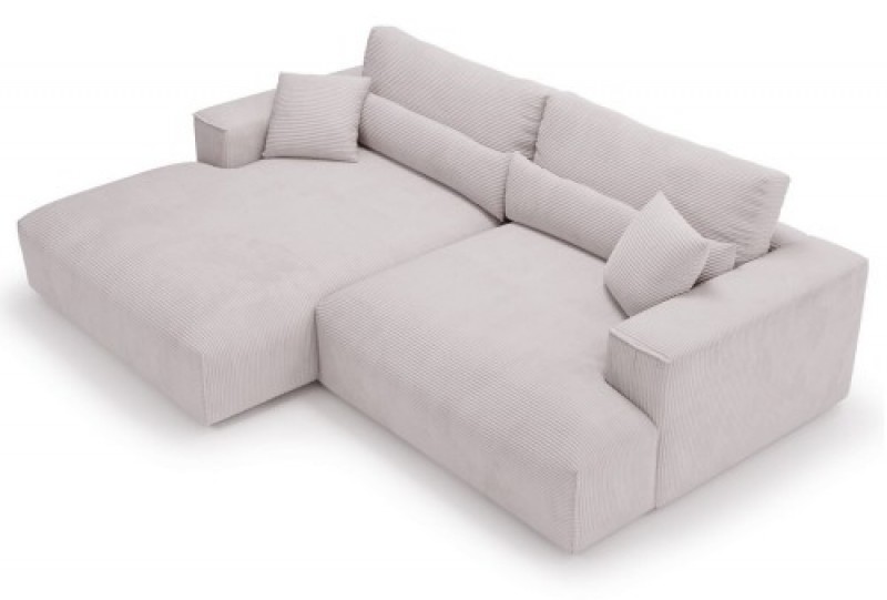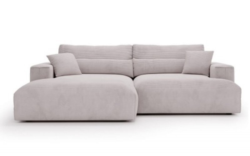 Sofa narożna Felicia to model średnio twardy wypełniony sprężynami falistymi i pianką. Całość już na pierwszy rzut oka sprawia wrażenie przytulnej kanapy w stylu chmurki. Może zostać wykończona dowolną tkaniną: zwykłą, plamoodporną lub pet friendly.