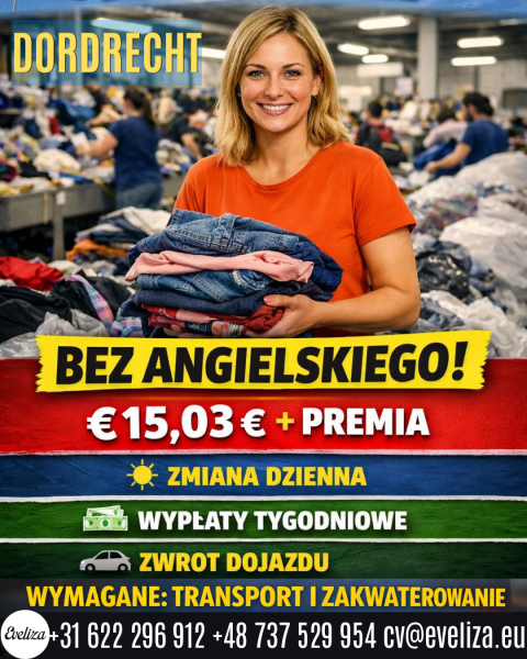 Miejsce pracy DORDRECHT 15,03 € + premia BEZ ANGIELSKIEGO