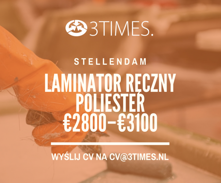 Praca w Holandii na stanowisku laminator ręczny / przetwórca poliestru w miejscowości Stellendam. Oferujemy wynagrodzenie w przedziale od 2800 do 3100 euro brutto miesięcznie w zależności od doświadczenia. Na tym stanowisku będziesz odpowiedzialny za produkcję wysokiej jakości elementów z poliestru z wykorzystaniem techniki ręcznego laminowania, stosowanej między innymi w branży morskiej i przemysłowej. Do Twoich obowiązków będzie należało ręczne laminowanie produktów, nakładanie mat i tkanin szklanych oraz żywic, odpowietrzanie i rolowanie laminatów w celu uzyskania odpowiedniej wytrzymałości, przygotowywanie form poprzez ich czyszczenie i woskowanie, a także wykańczanie produktów poprzez szlifowanie i dalszą obróbkę. Będziesz również odpowiedzialny za kontrolę jakości i wymiarów oraz zgłaszanie ewentualnych nieprawidłowości i usprawnień. Praca odbywa się zgodnie z obowiązującymi zasadami BHP w środowisku produkcyjnym, z wykorzystaniem środków ochrony osobistej oraz odpowiedniej wentylacji. Oczekujemy od kandydatów zmysłu technicznego, dokładności i dbałości o jakość wykonywanej pracy, gotowości do pracy fizycznej w pozycji stojącej, umiejętności pracy zespołowej oraz samodzielności. Mile widziane jest doświadczenie na podobnym stanowisku oraz posiadanie certyfikatu VCA lub gotowość do jego wyrobienia. Oferujemy stabilne zatrudnienie w rozwijającej się firmie, atrakcyjne wynagrodzenie adekwatne do doświadczenia, przyjazną atmosferę pracy oraz możliwość rozwoju i zdobywania nowych umiejętności. Zainteresowane osoby zapraszamy do aplikowania.