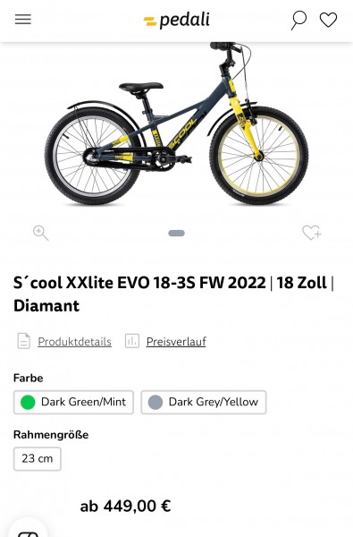 Rower dziecięcy marki SCool, model XXlite 20-3S.