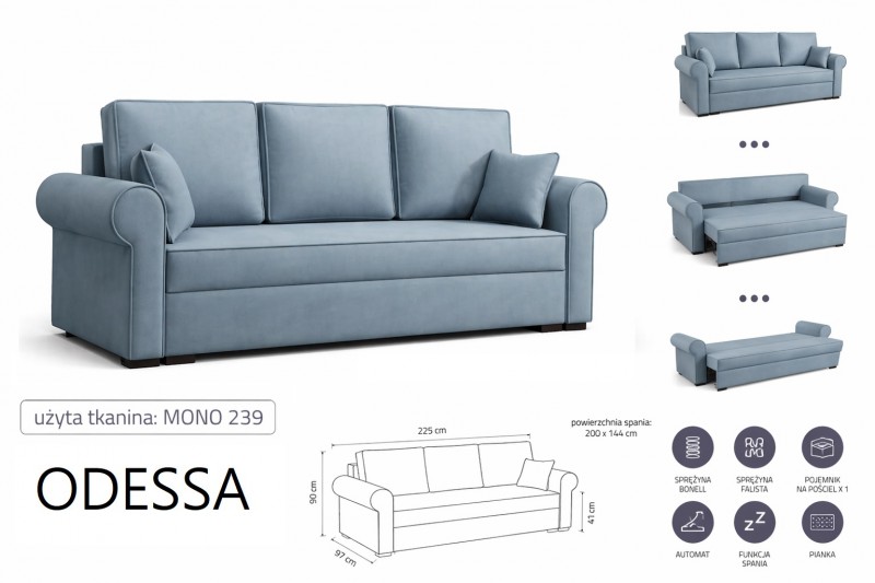 Rozkłada sofa do salonu na sprężynach ODESSA