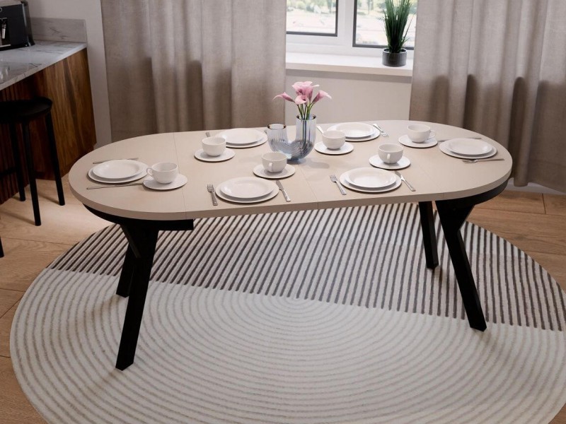 Dzięki zastosowaniu prowadnic kulkowych oraz dwóch wkładów powiększających po 50 cm, rozkładanie stołu jest szybkie i wygodne. To doskonałe rozwiązanie zarówno na co dzień, jak i podczas spotkań rodzinnych czy przyjęć.