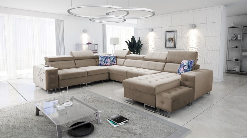 NAROŻNIK CALVARO WYM.296/234CM WYS.83-102CM Z FUNKCJĄ SPANIA+PUFA od DEMEUBELSHOP
