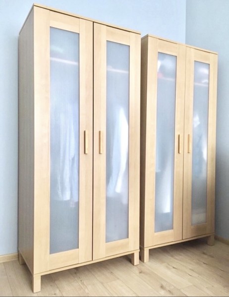 (szafy można rozdzielić i postawić osobno) W każdej szafie jest półka i drążek na wieszaki)